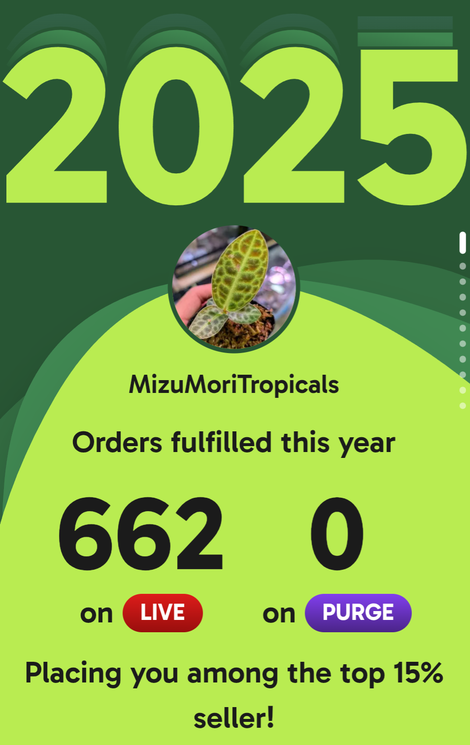 THANK YOU for your support as we reached top 15% of sellers on Palmstreet for 2025! Crazy thing is this..we only were on Palmstreet for less than 3 months!
