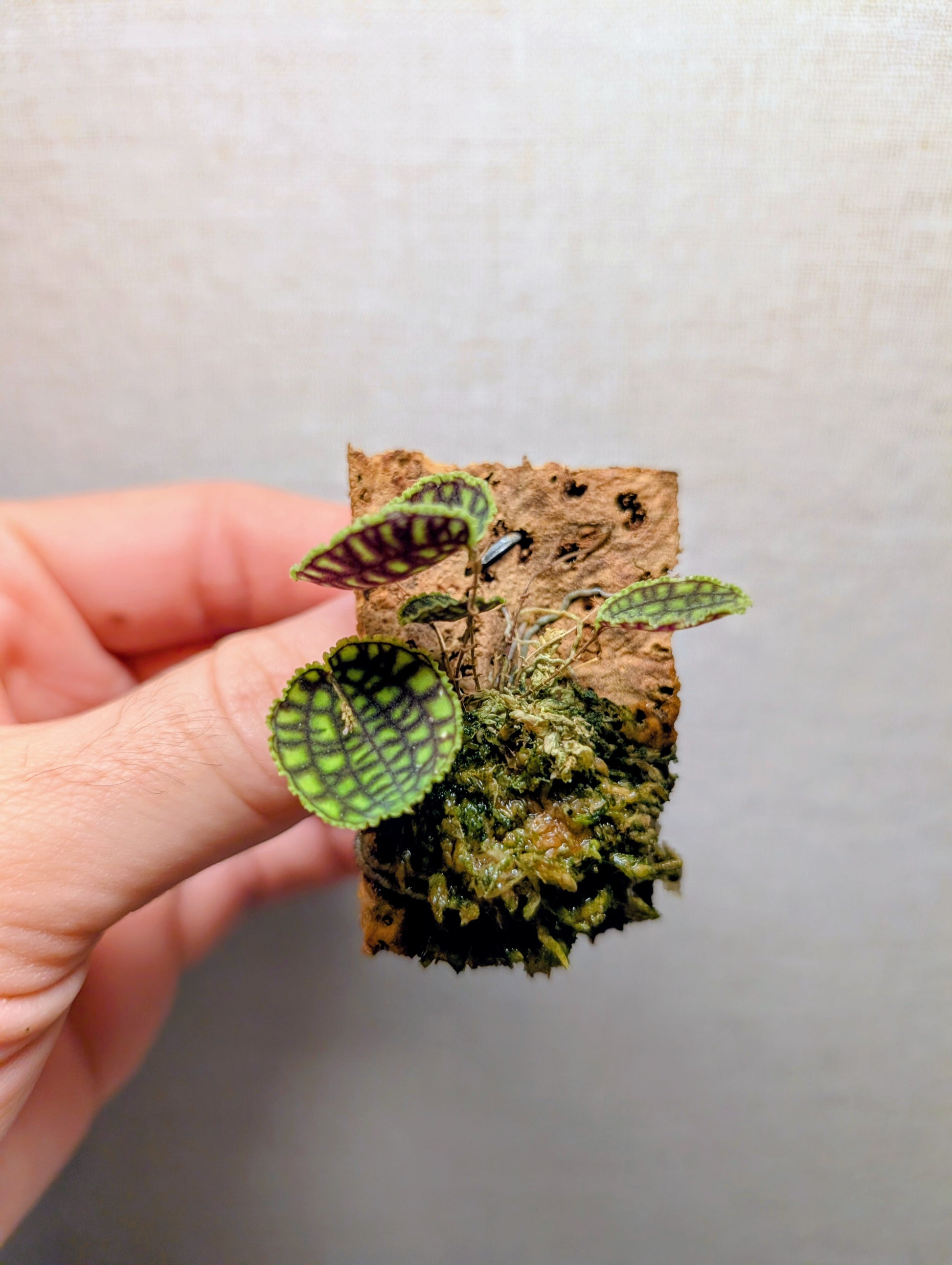 Beautiful miniature orchid endemic to the neotropical rainforests. The flowers bloom in the middle of the leaf and are only a few millimeters in length. Excellent choice for terrariums with high humidity.